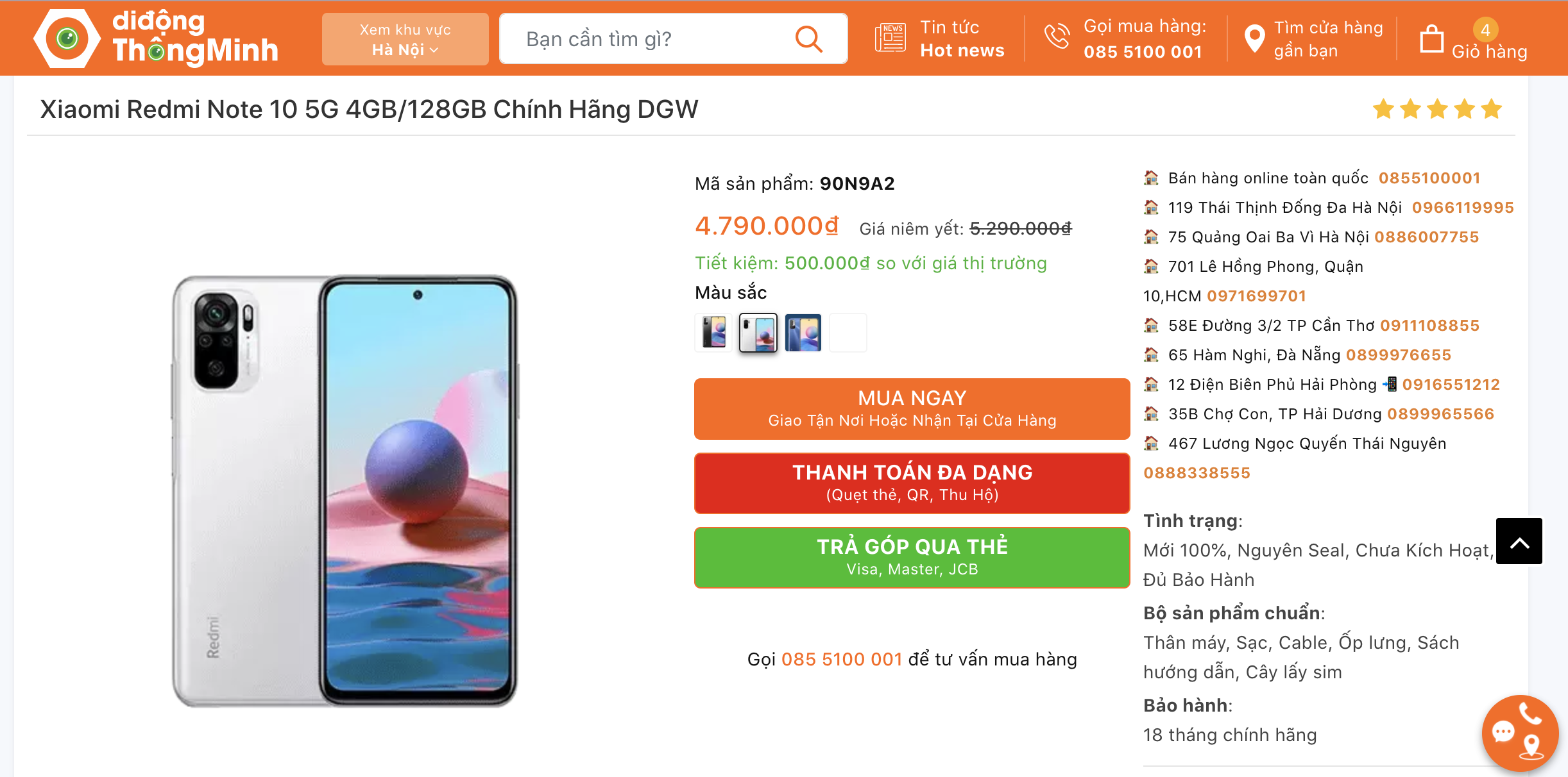 Xiaomi Redmi Note 10 5G 4GB/128GB Chính Hãng DGW giá 4.790.000đ