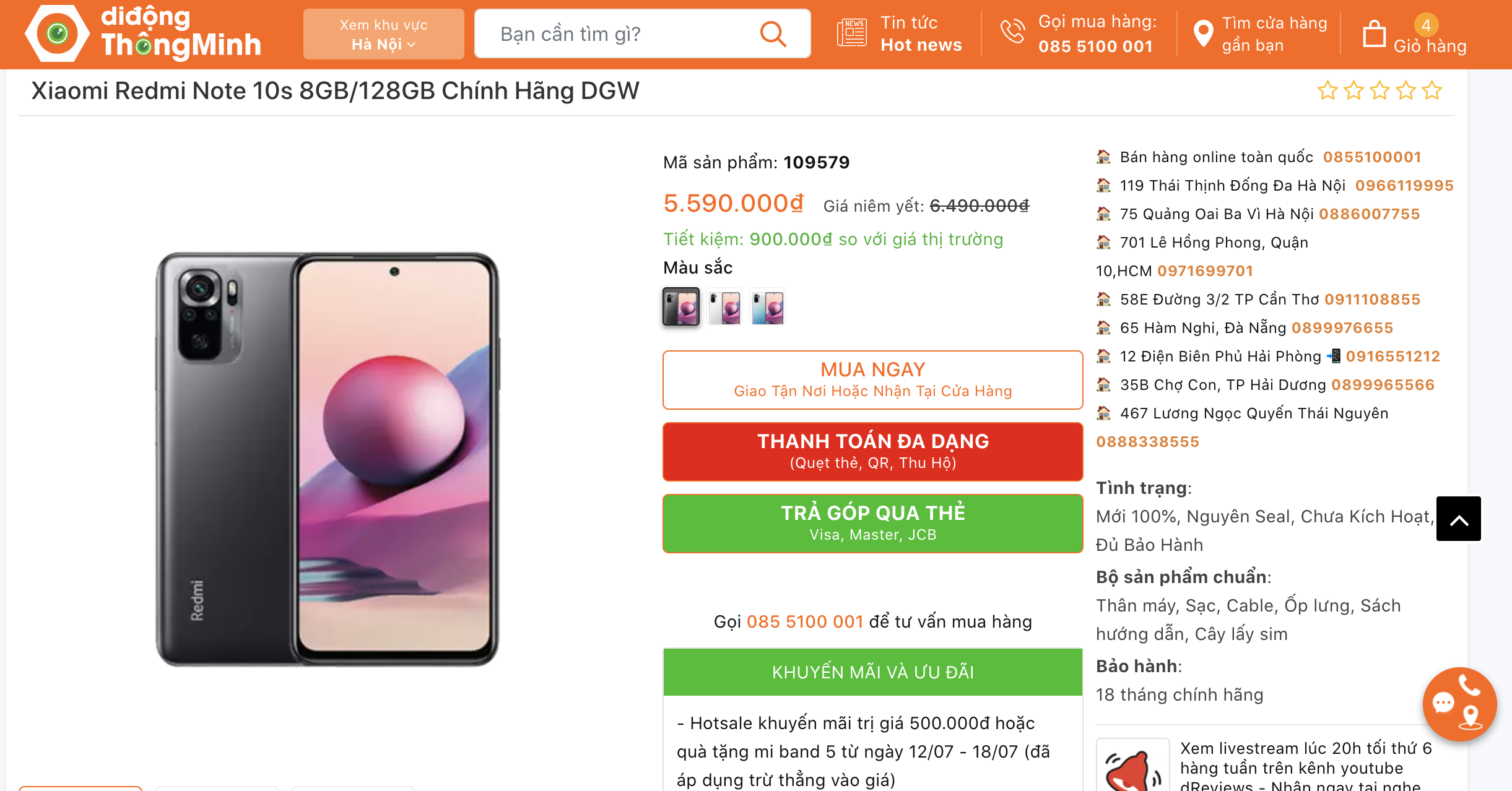 Xiaomi Redmi Note 10s 8GB/128GB Chính Hãng DGW giá 5.590.000đ