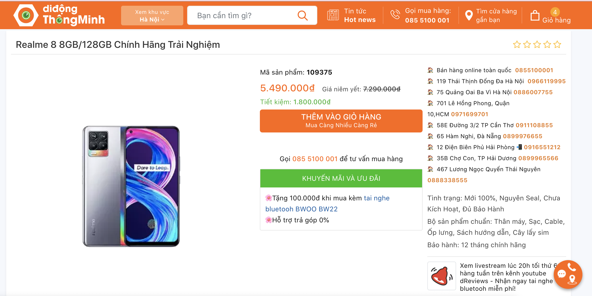 Realme 8 8GB/128GB Chính Hãng Trải Nghiệm giá 5.490.000đ
