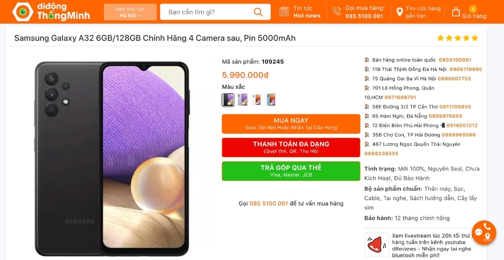Samsung Galaxy A32 6GB/128GB Chính Hãng Giá 5.990.000đ